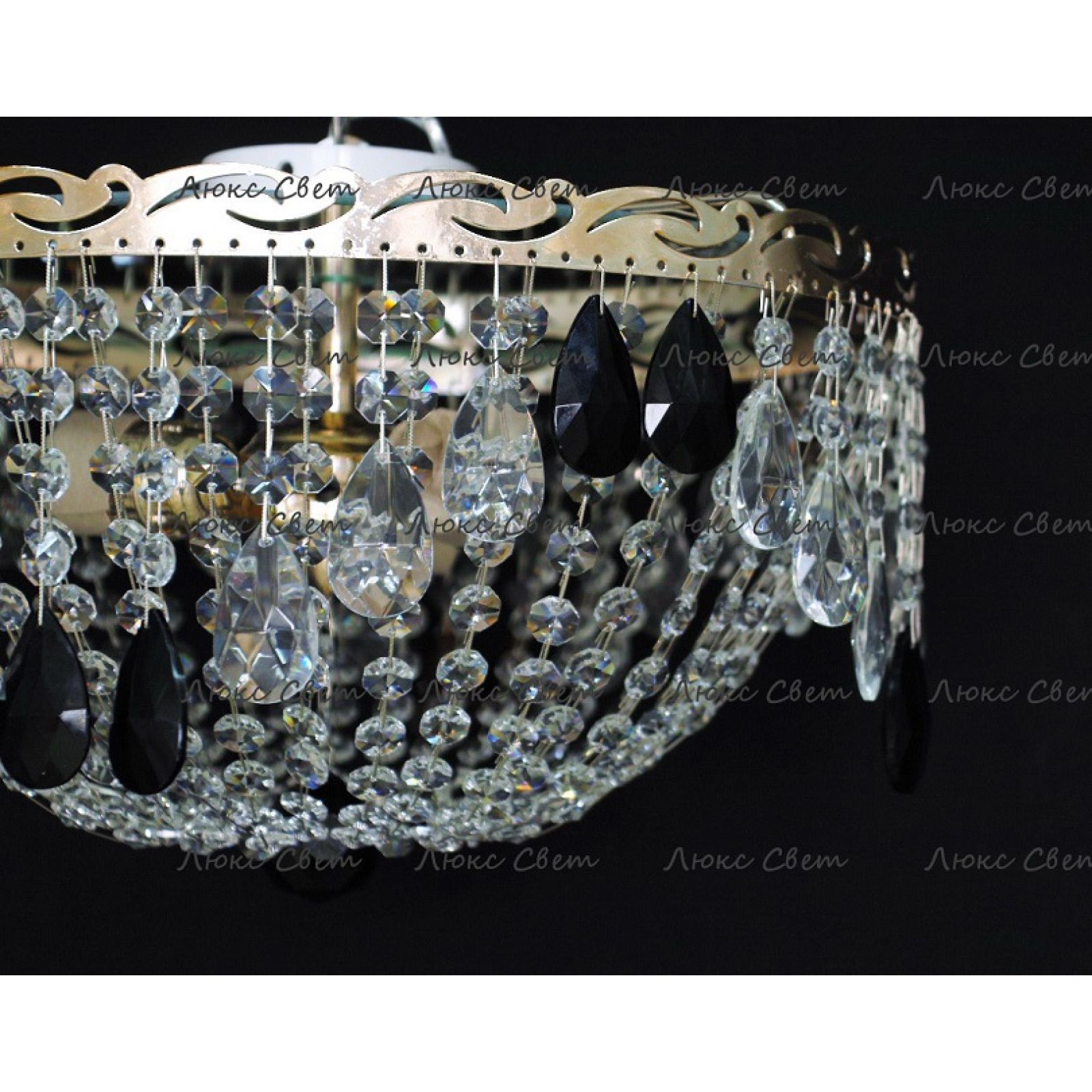 Потолочная люстра Анжелика журавлик черного цвета от российского производителя светильников Гусь-Хрустальный идеально подойдет для освещения зала, гостиной, спальни. Люстра выполнена в классическом стиле с изящными хрустальными подвесками. Арматура светильника выполнена из металла, цоколь - E27. Цвет арматуры - золотой или серебристый, на выбор. В основании люстры расположено зеркало, которое отражает свет и усиливает освещенность комнаты.