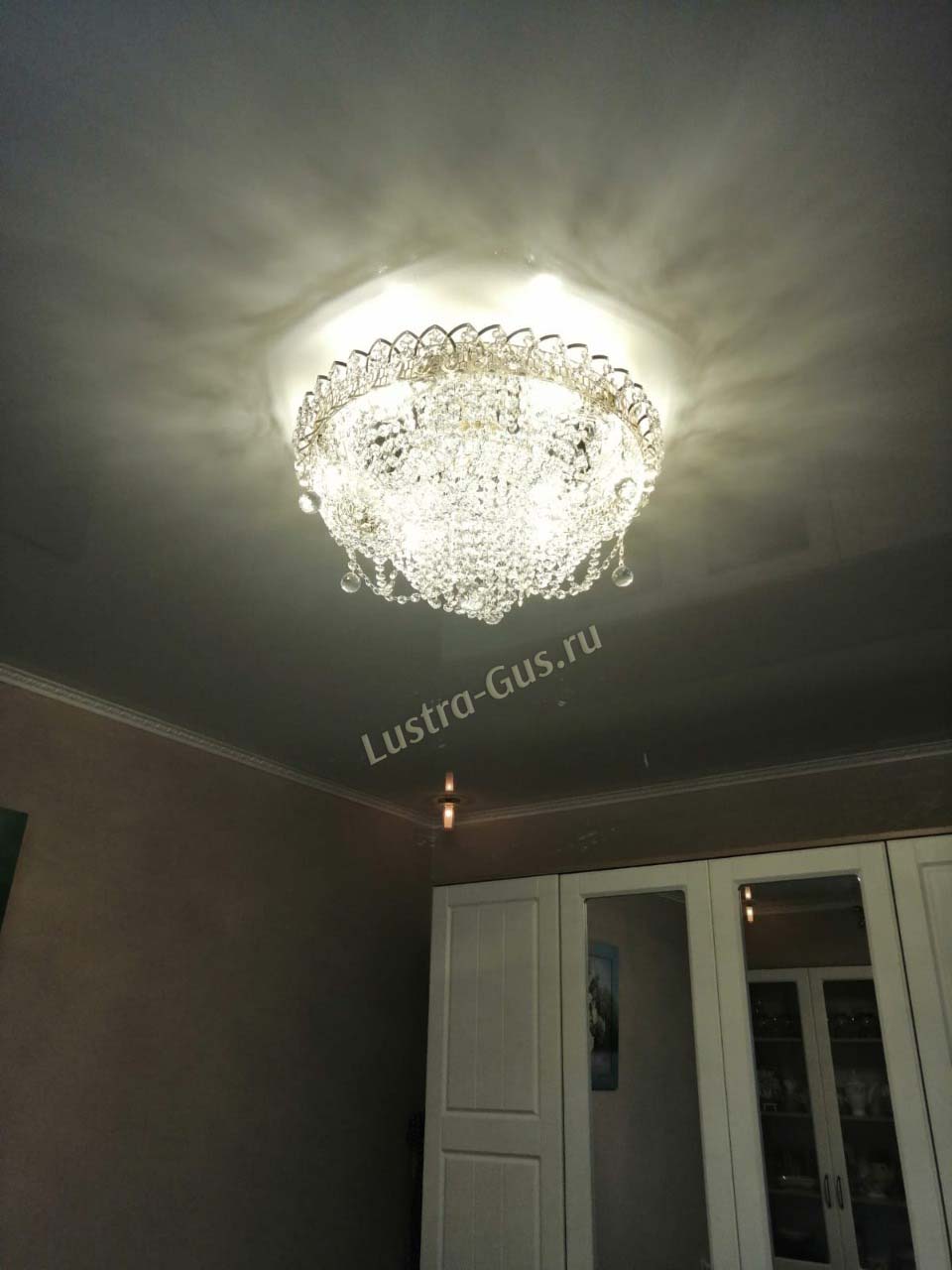 - Тип крепления - люстры подвешиваются на крюк, который предварительно крепится к потолку. Если после ремонта вы решили установить натяжной потолок, то рекомендуется использовать потолочные люстры. Для установки таких хрустальных светильников потребуется специальная монтажная планка.