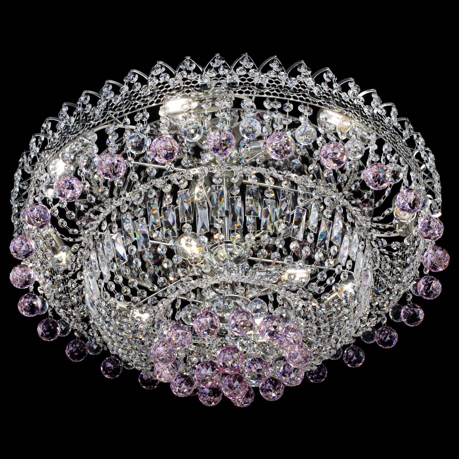 Люстра Хрустальный каскад №3 Шар розовая в Самаре