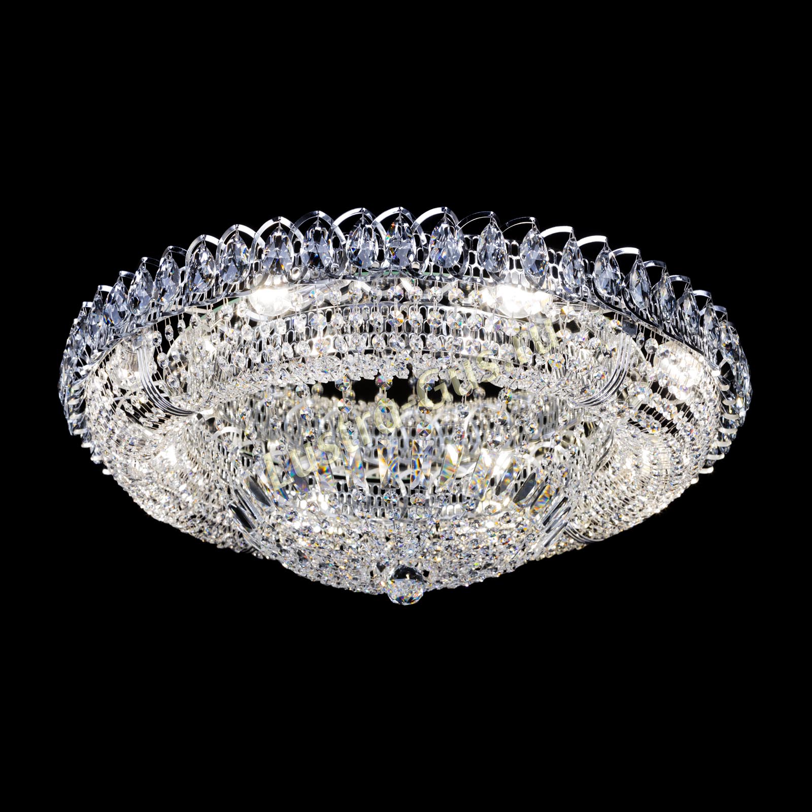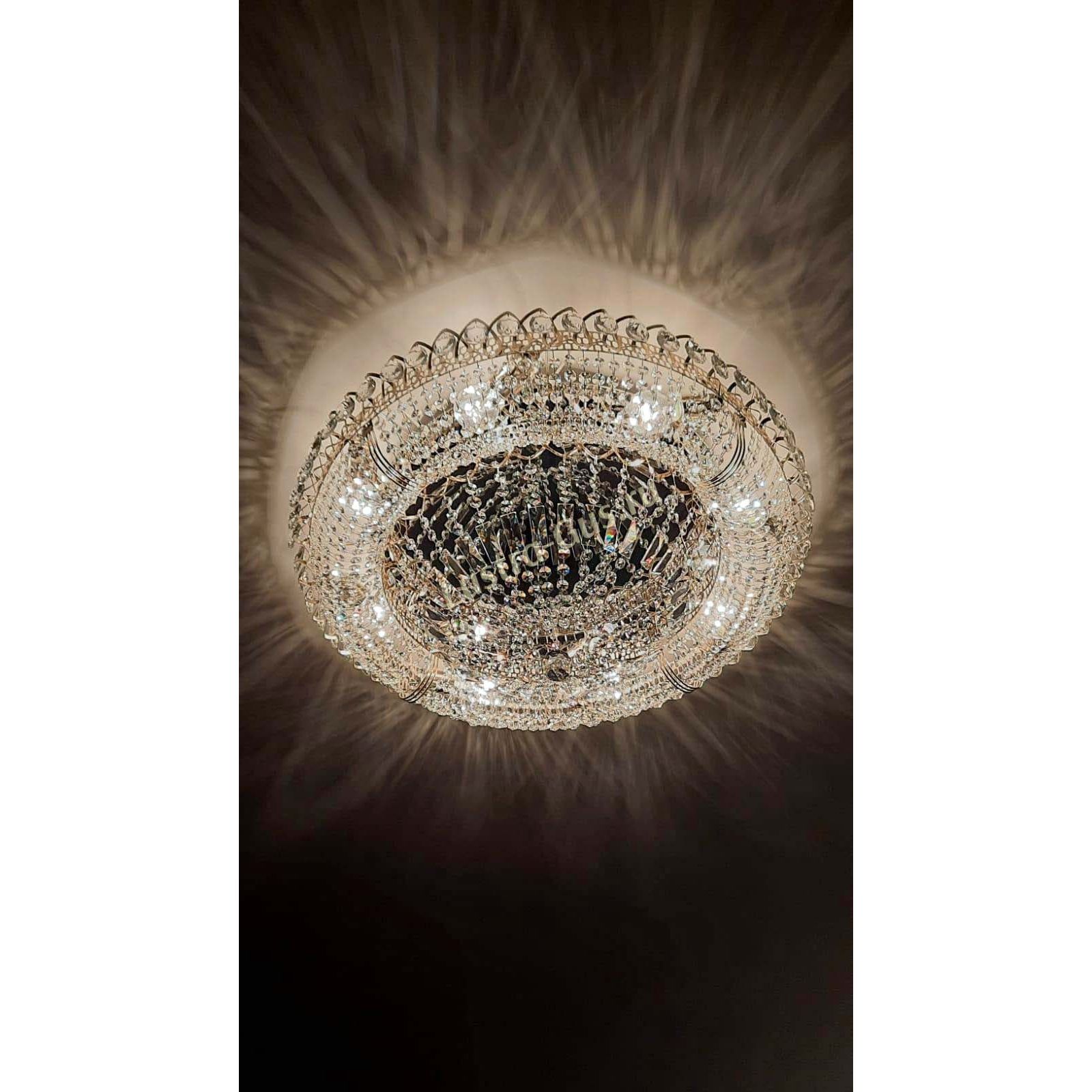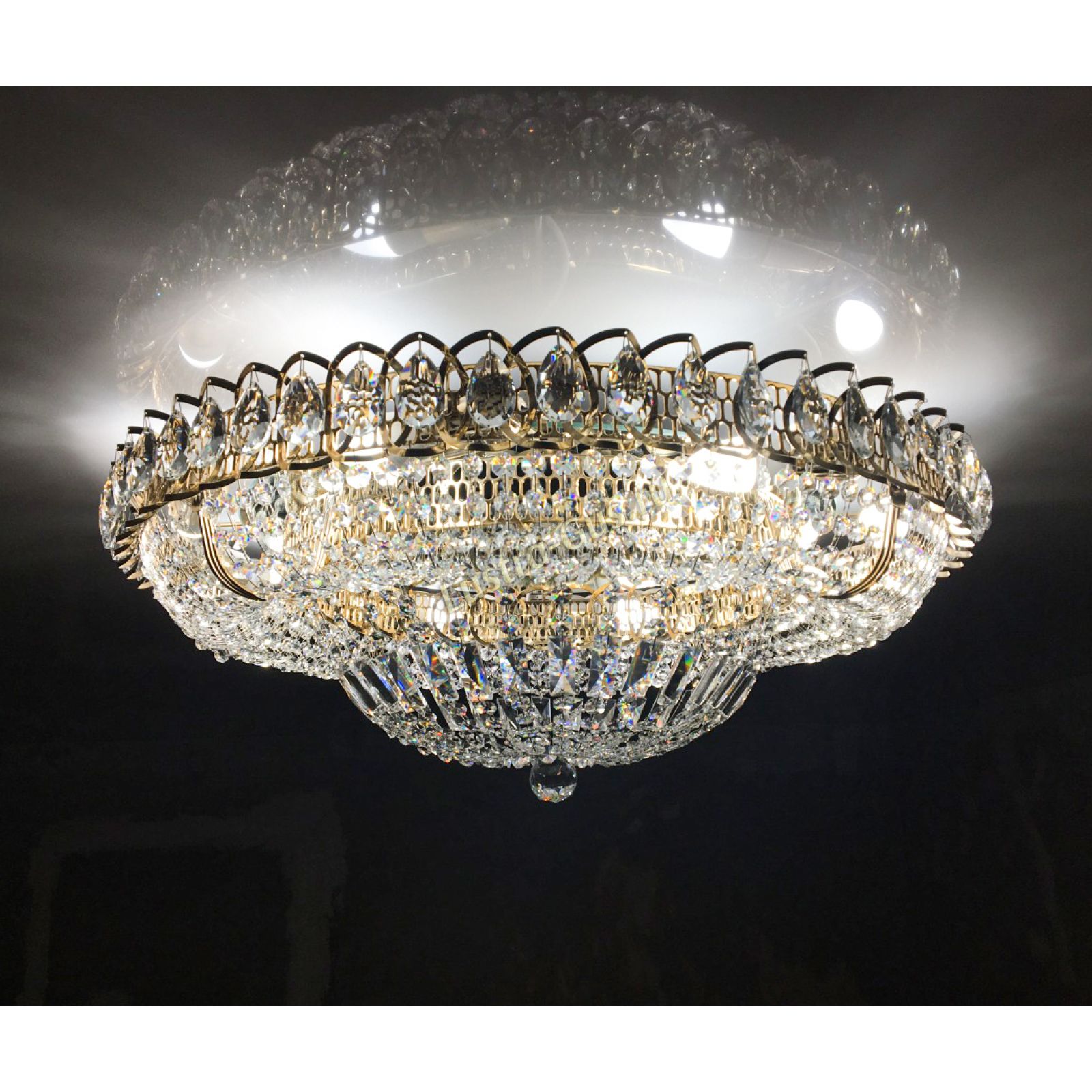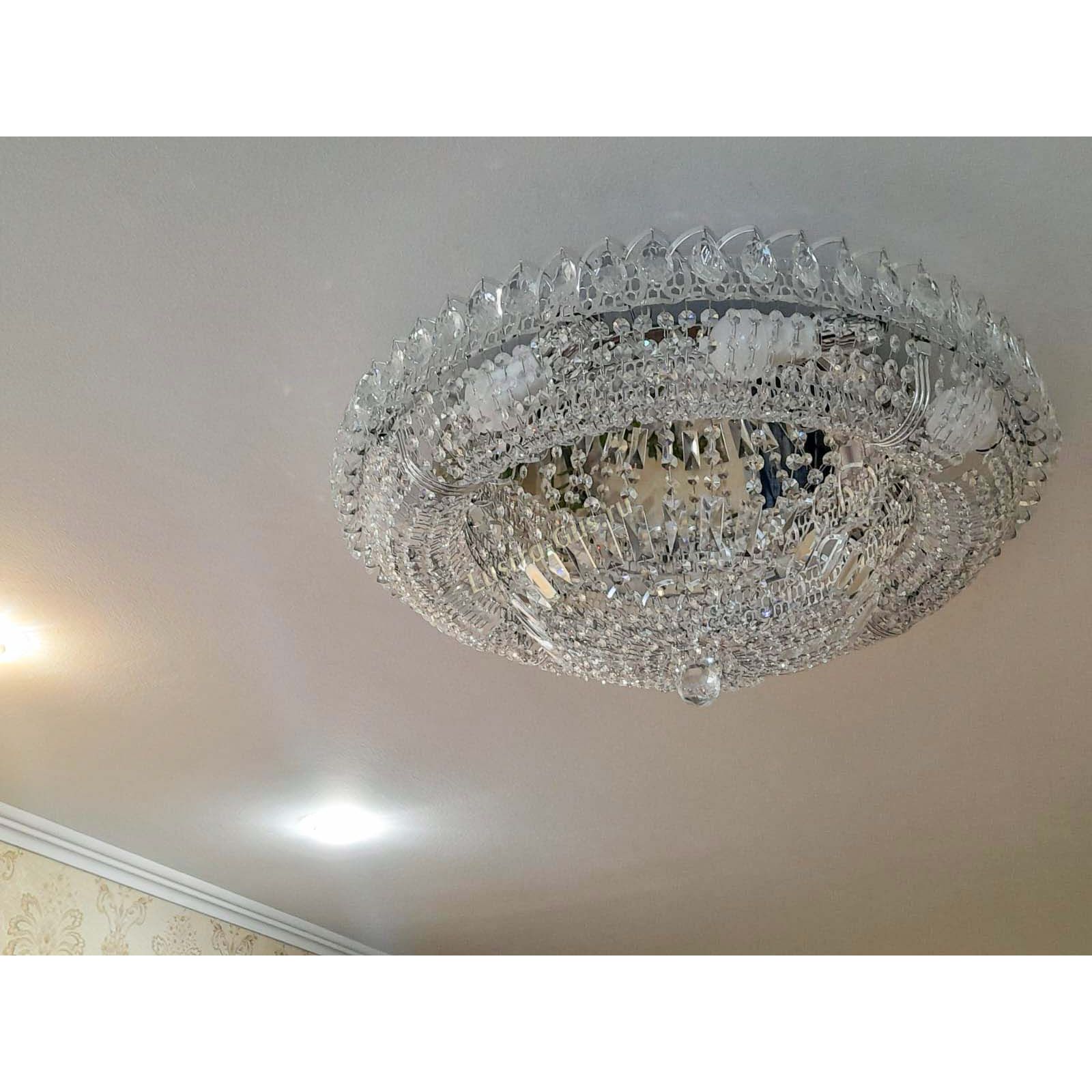 Добрый день! Купили потолочную люстру в мае. Очень довольны, доставка отличная, очень хорошо упакована, красивая и воздушная, размер 70см, в комнате 18кв отлично смотрится. ГУСЬ ХРУСТАЛЬ, СПАСИБО!!