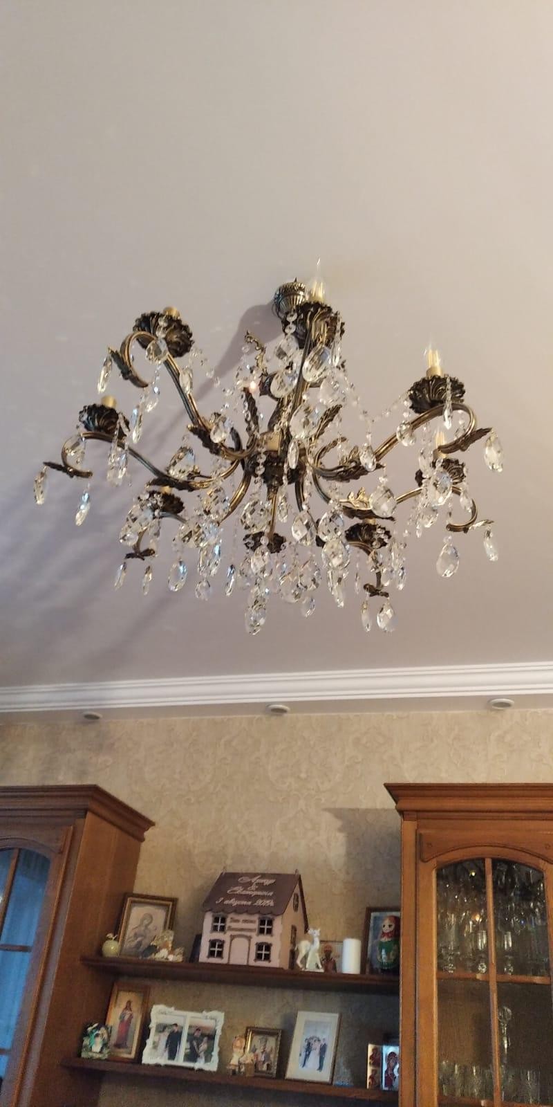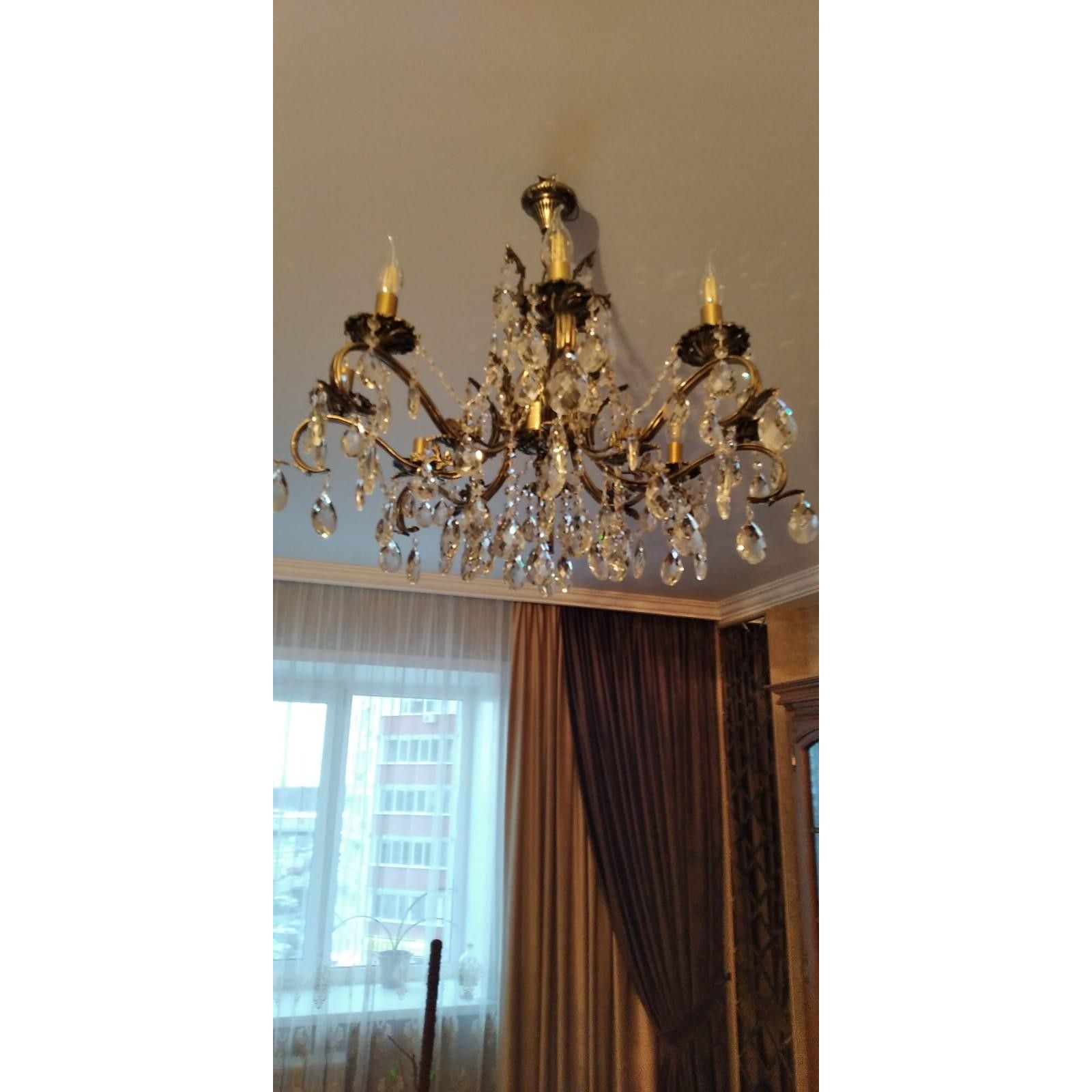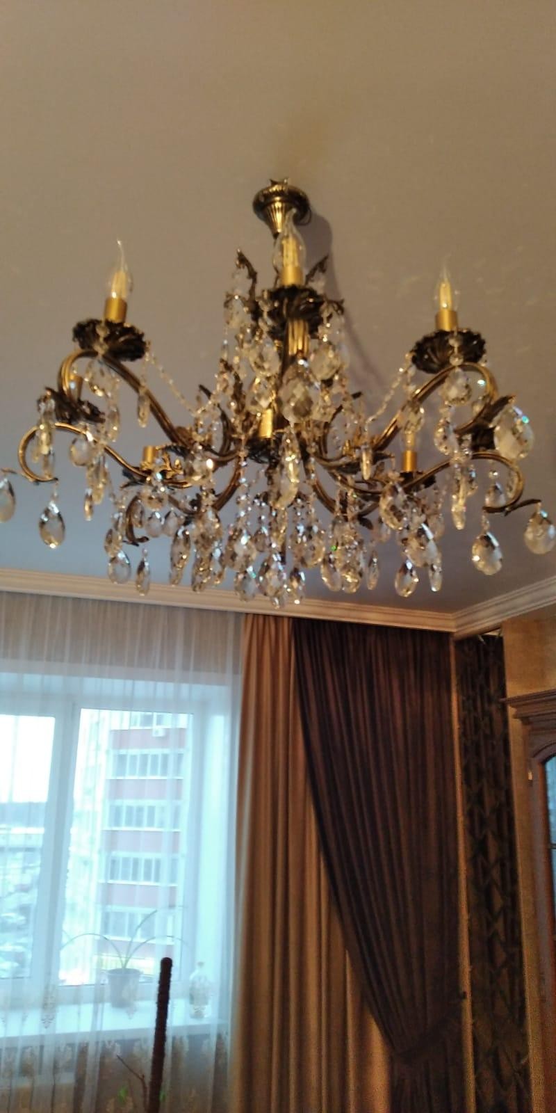 Марина, спасибо! Люстру забрали, все подсоединили, до конца не проверили, на нас лампочки закончились. Два хрусталика пришлось выбросить, большой самый и маленький, но все хватило, один большой в запасе и 4 маленьких, а так же металлических зажимов есть запас. Спасибо ещё раз большое. Все подошло, очень вписалась нам в интерьер. Я довольная! Наши люстры всё-таки лучше импортных, ещё раз убедилась!